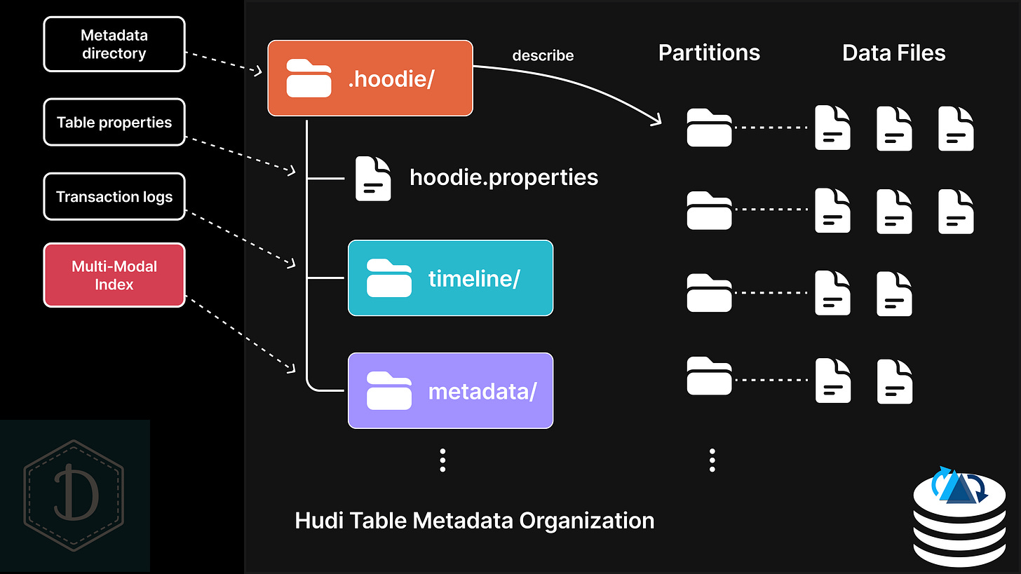 Every data lakehouse table—whether it uses Delta, Hudi, or Iceberg—contains a metadata directory that describes the data stored in that table. For Hudi tables, this is the .hoodie/ directory, and you can learn more about Hudi's complete storage layout (including this metadata directory) in this post.
