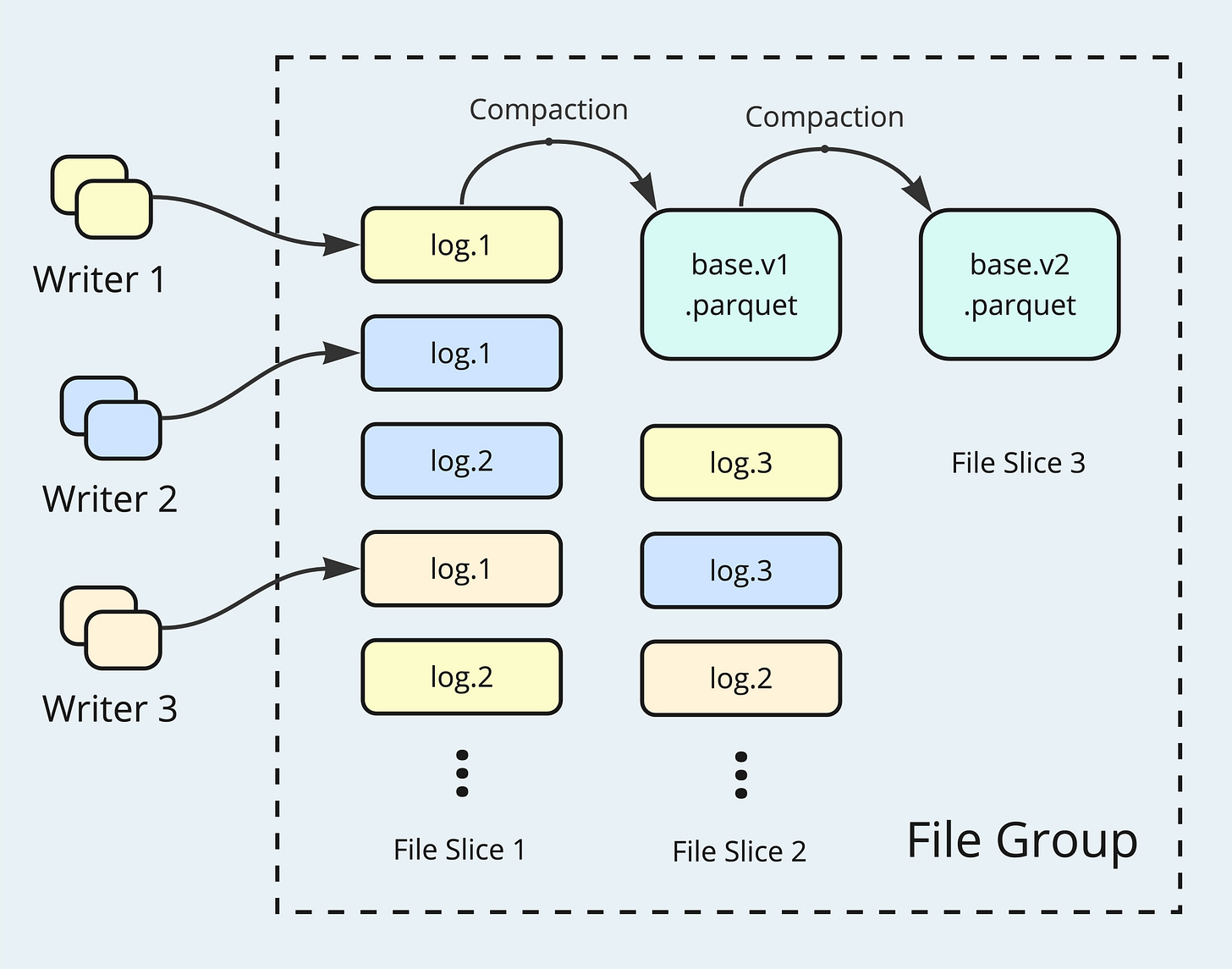 NBCC allows multiple writers to persist updating Log Files freely to the same File Slice, and defers the conflict resolution to the compaction stage. Different from the 0.x versions, Log Files in 1.0 also record commit completion time in addition to the starting time. This new piece of information enables proper sorting for the Log Files and helps determine File Slice boundaries. Merging semantics based on a configurable ordering field are applied to the updating records during compaction. To resolve the clock skew issue, TrueTimeGenerator is implemented to ensure monotonically increasing timestamps for all writers' commits.