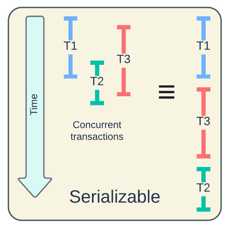 If the Isolation property is not honored, concurrent transactions will incur read and write anomalies, such as dirty read/write, lost update, etc. While enforcing a strictly serial execution of all transactions can eliminate the anomalies, this severely impacts performance, rendering the system practically unusable. Therefore, we should allow concurrent execution for performance, and coordinate them in equivalence to a serial schedule for correctness. In other words, what we need is a serializable schedule.